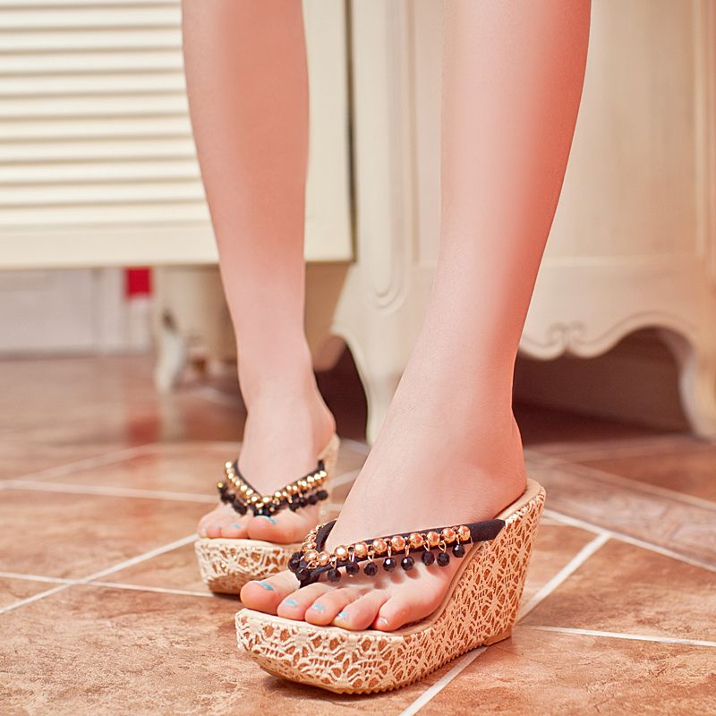 靓丽妹妹玉足秀坡跟人字拖