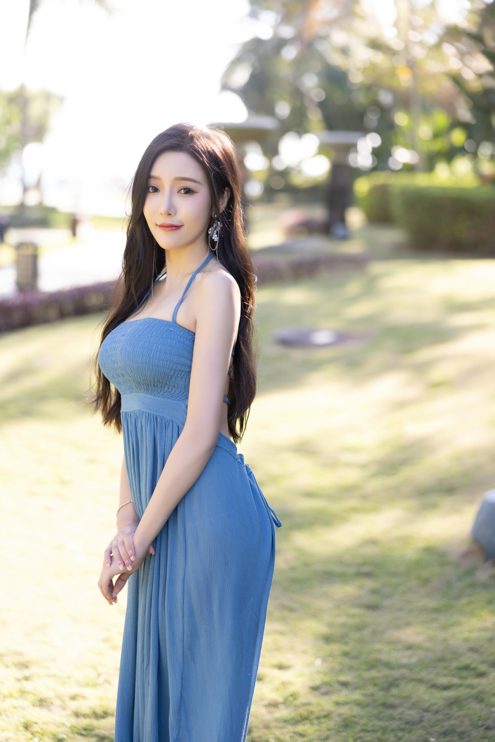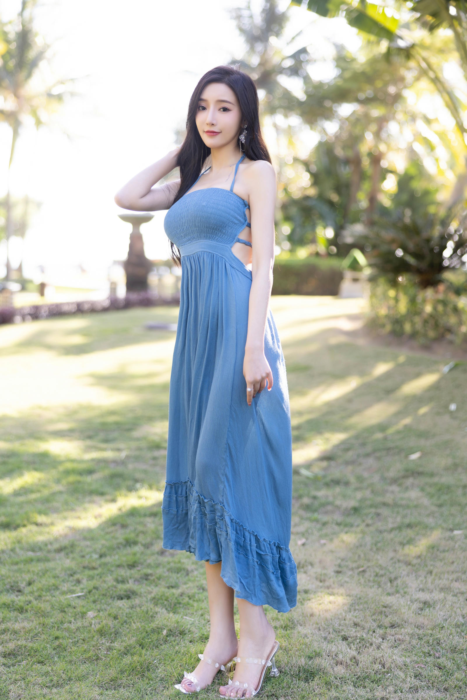 王馨瑶Yanni 内购原版 NO.021 蓝色露背连衣裙