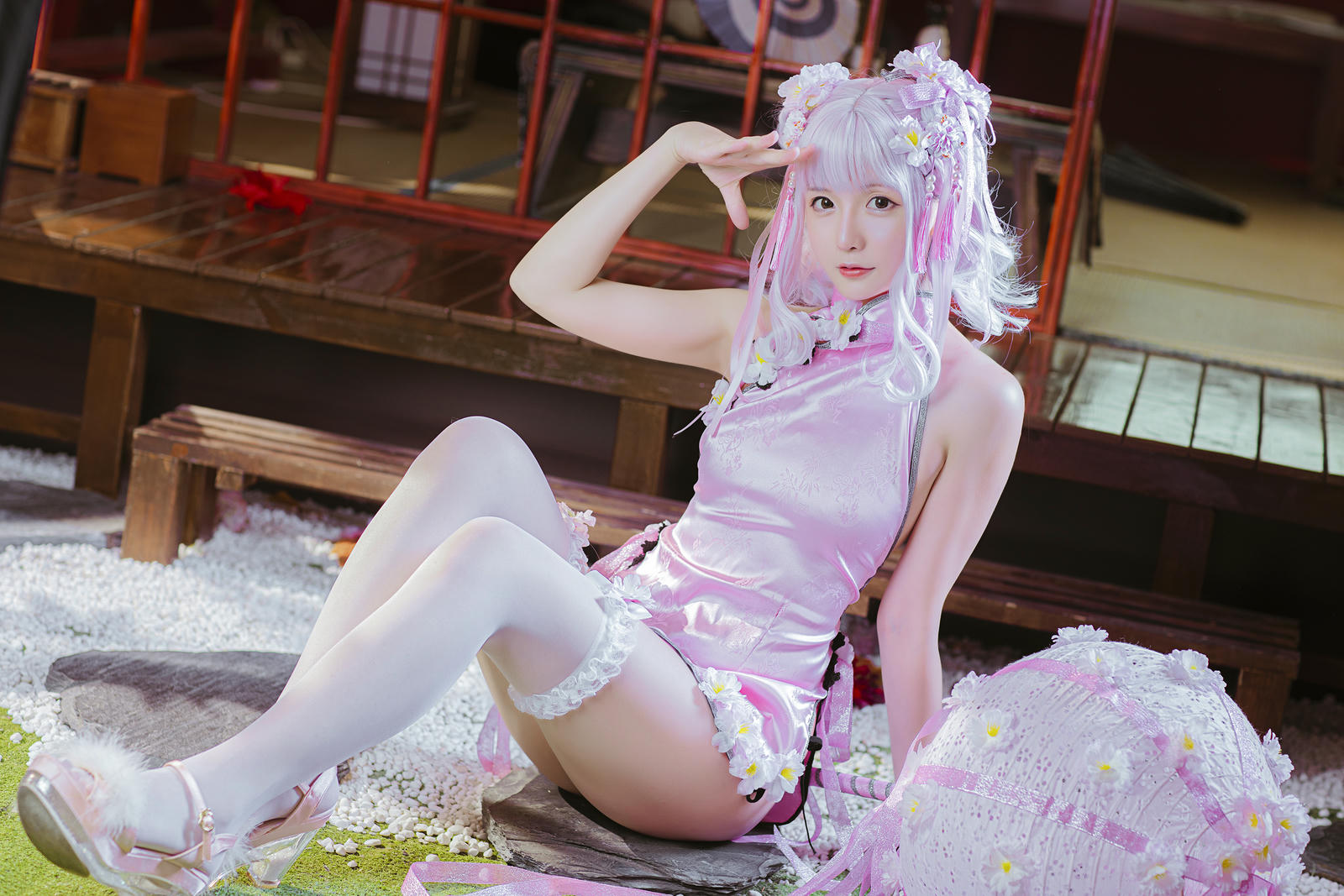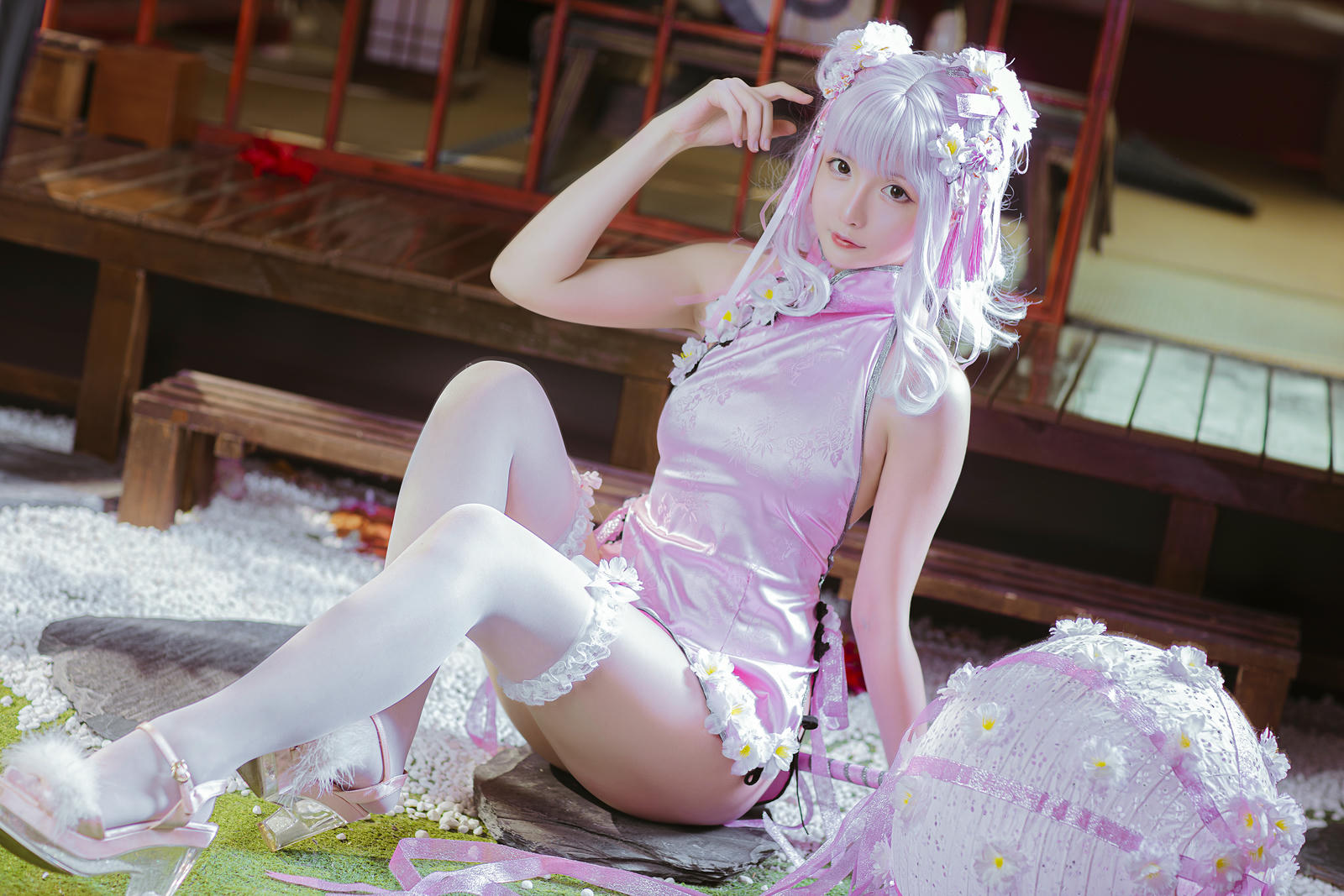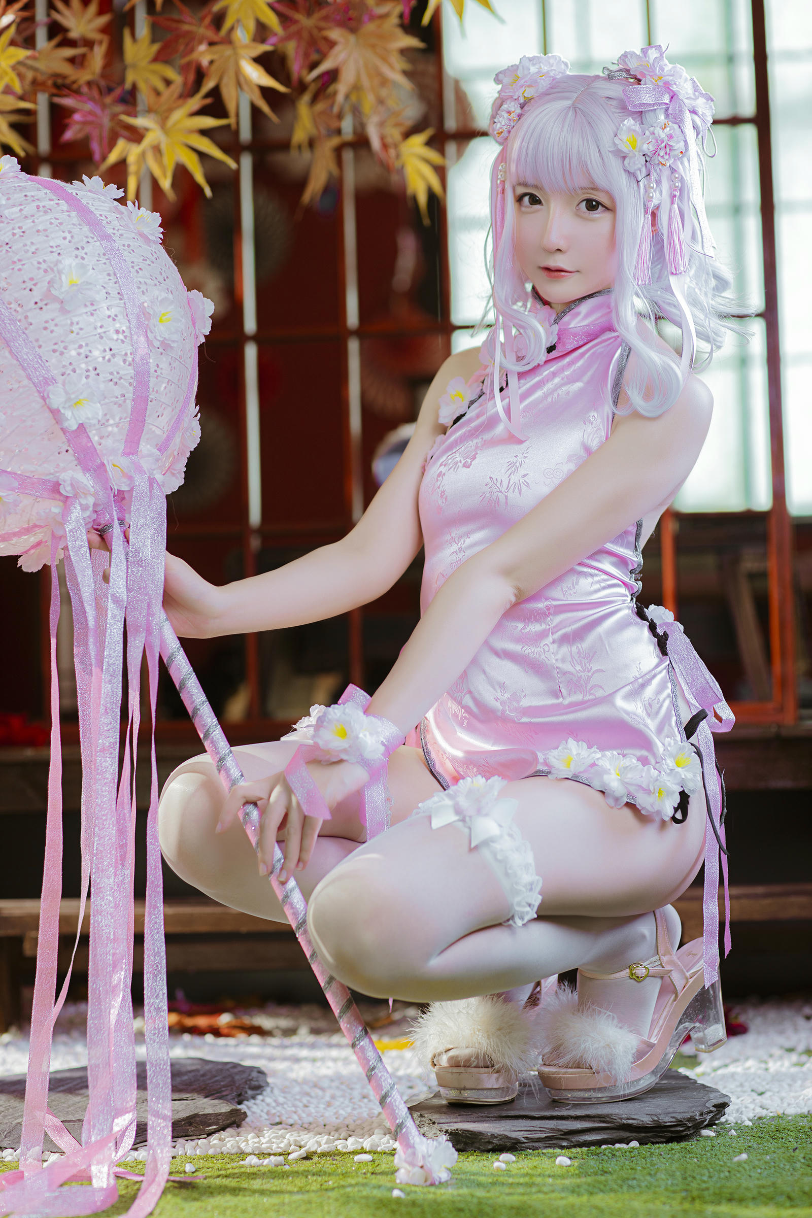 星之迟迟 花与旗袍 粉旗袍