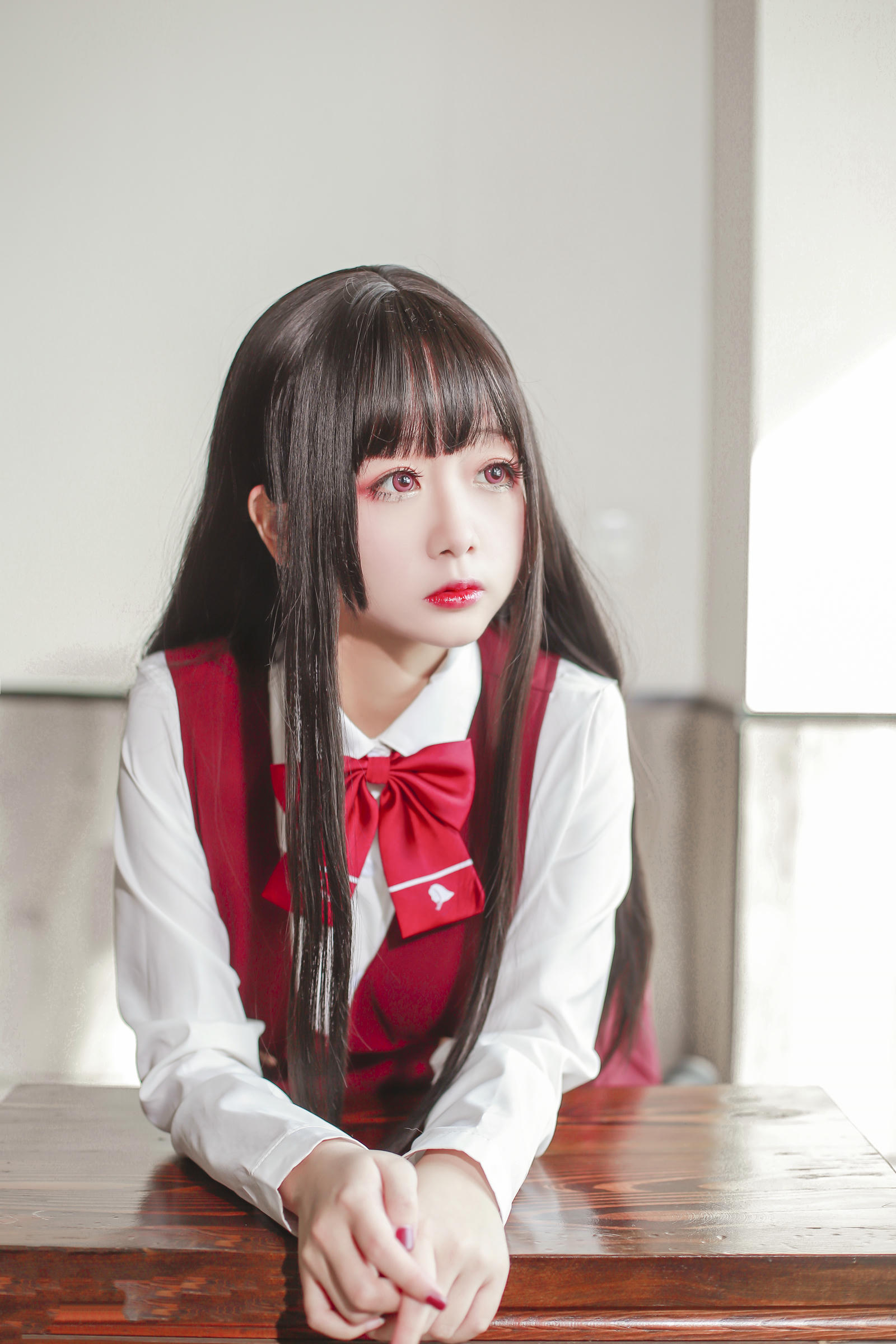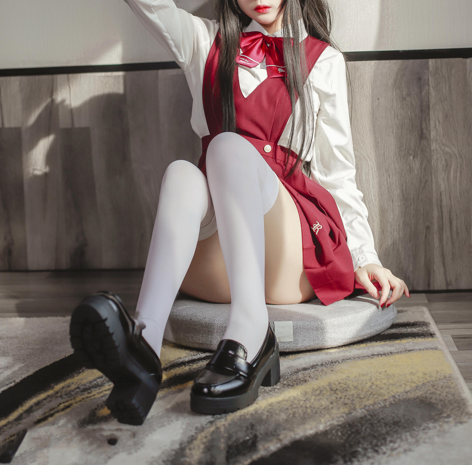 JK少女红裙