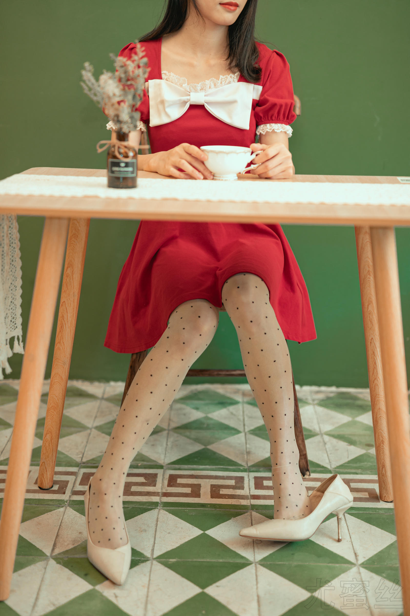 尤蜜丝 NO.050 穿搭推广展示图集 餐桌相框与红裙